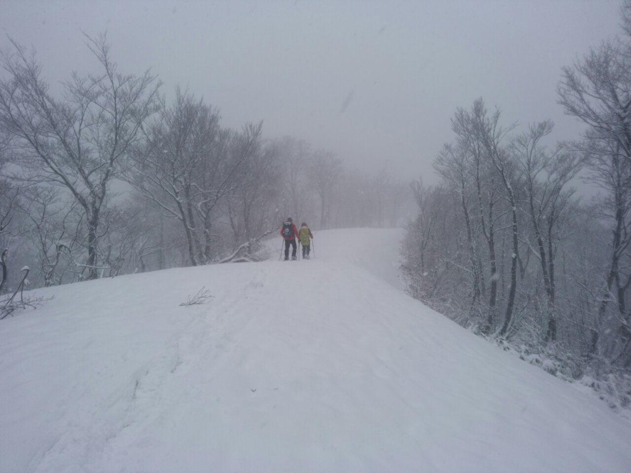 稜線はホワイトアウトでしたが、新雪の美しいブナ林と、モフモフのスノーシューハイクを満喫した、越後の守門岳でした!